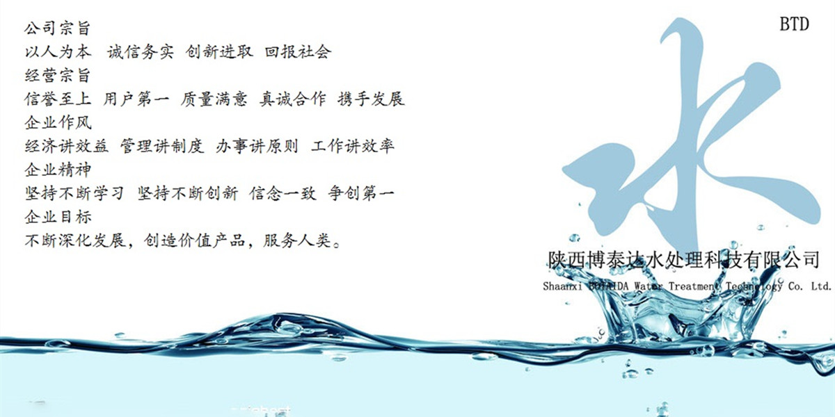 陜西博泰達(dá)水處理科技有限公司是西北一家集銷售、科研開發(fā)、安裝和技術(shù)服務(wù)為一體的高新環(huán)保科技型企業(yè)。公司以科技創(chuàng)新為先導(dǎo),全心致力于人類環(huán)境保護(hù)和發(fā)展。以客戶滿意、打造完善服務(wù)為遵旨,為廣大用戶提供優(yōu)質(zhì)的水處理設(shè)備和空氣凈化系統(tǒng)。